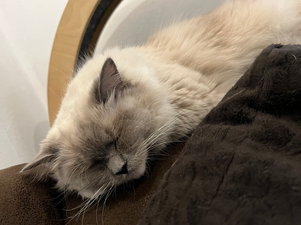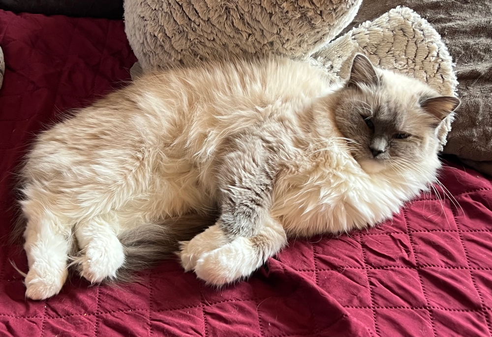 Luna, unsere wundervolle „Nudl“ ist eine sehr ruhige, liebevolle und eigenständige Katze und sehr liebevolle, fürsorgliche und sehr geduldige Katzenmama. Sie liebt unser Katzenlaufrad abgöttisch und ist charakterlich typisch Katze- wenn SIE schmusen möchte, hat man keine andere Chance, als ihr das zu gewähren. Wenn SIE jedoch nicht möchte, wird man sie auch nicht überreden können. Im Rudel ist sie stets willkommen und versteht sich mit all unseren Mädels. Sie hat einen erstklassigen Stammbaum des Franconia CatClub e.V., trägt die Farbe blue mitted und ist am 18.10.2021 geboren.